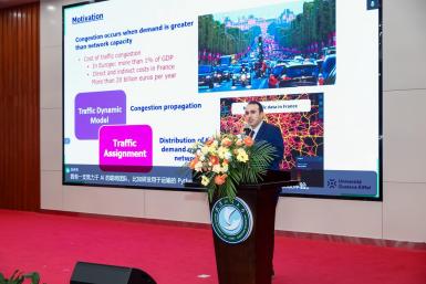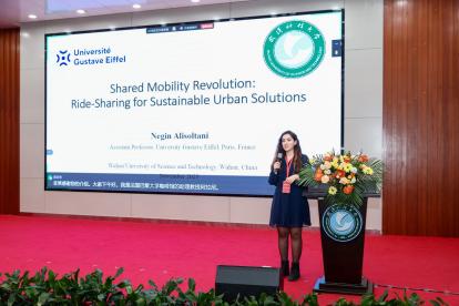 会议主旨论坛在崇实会堂举行。来自吉尔吉斯斯坦国际大学的Maksatbek Anarbaev教授、法国巴黎西岱大学的Laurent Royon教授、北京航空航天大学的田大新教授、东南大学的杨敏教授、合肥工业大学的龙建成教授、长沙理工大学的胡林教授分别围绕电动交通、电动汽车热管理、复杂环境下的全自动驾驶、综合枢纽智能服务、大规模城市路网多模式交通分配与网络设计、数据驱动的汽车安全等热点问题进行技术分享和讨论。主旨论坛由法国西岱大学教授Guo Xiaofeng主持。